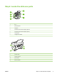 Step 4: Locate the all-in-one parts 5 4 6 3 2 7 1 1 tray 1 2 priority input slot 3 output bin 4 automatic document feeder (ADF) output bin 5 automatic document feeder (ADF) input tray 6 control panel 7 cartridge-door release 9 10 11 8 ENWW 8 interface ports 9 security-lock slot 10 power switch 11 power connector Step 4: Locate the all-in-one parts 3