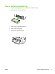 Step 6: Install the media tray ENWW 1. Remove any shipping tape from the inside and outside of the tray. 2. Slide the tray in until it fits securely. 3. Open the top of the media input tray. 4. Slide out the media guides. 5. Pull out the long-media support.