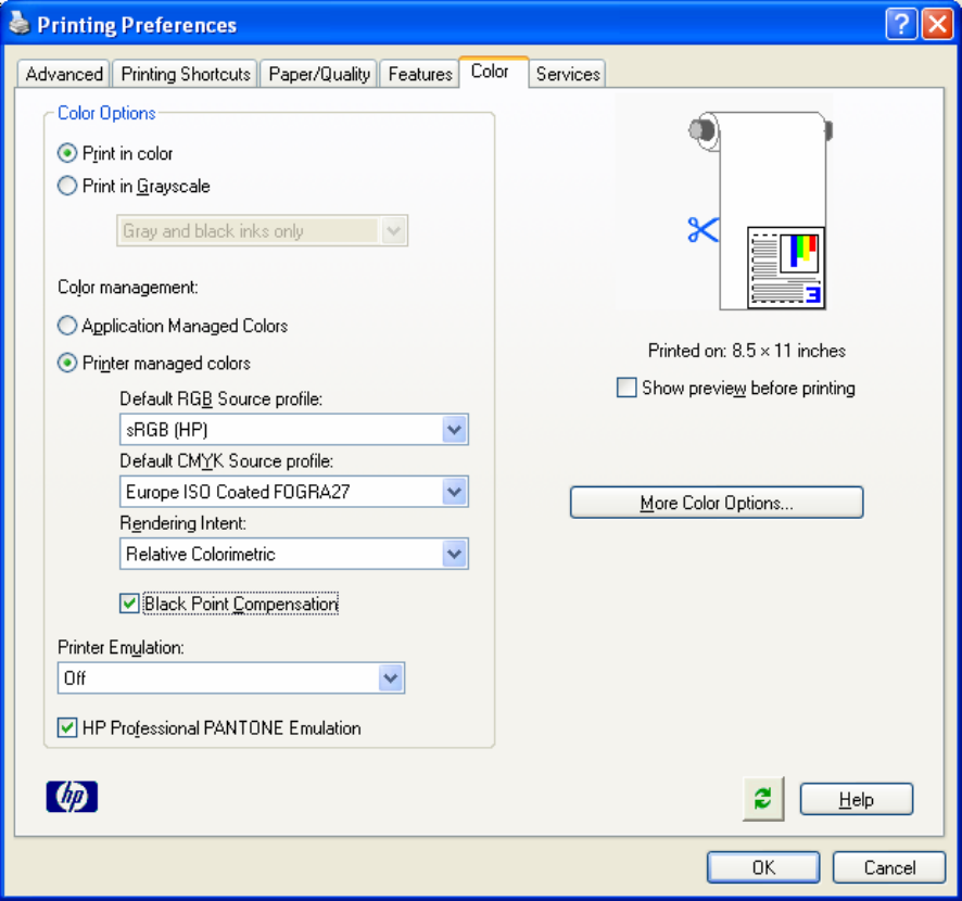 o Default CMYK Source Profile: Select Europe ISO Coated