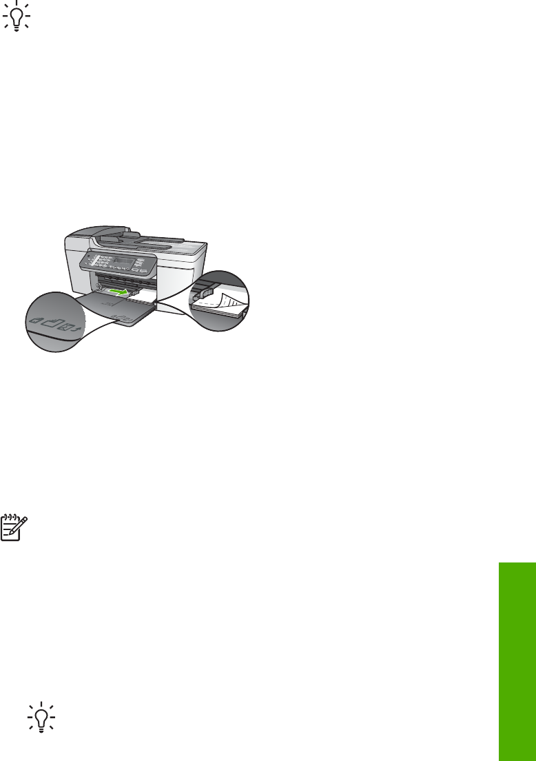 Du kan lægge en eller flere konvolutter i inputbakken i HP All-in-One. Undgå at bruge