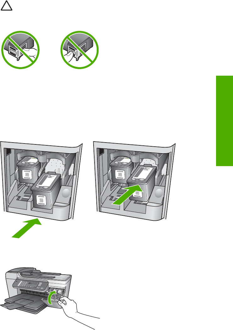 Forsigtig! Rør ikke de kobberfarvede kontakter eller blækdyserne. Hvis