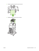 2. Sıkışan kağıt görünüyorsa, zımbalayıcı/yığınlayıcıdan çekin. Zımbalayıcı/yığınlayıcı kapağını