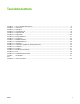 Taulukkoluettelo Taulukko 1-1 Taulukko 2-1 Taulukko 2-2 Taulukko 2-3 Taulukko 2-4 Taulukko 2-5 Taulukko 2-6 Taulukko 2-7 Taulukko 3-1 Taulukko 3-2 Taulukko 3-3 Taulukko 3-4 Taulukko 3-5 Taulukko 3-6 Taulukko 3-7 Taulukko 3-8 Taulukko 3-9 Taulukko 3-10 Taulukko 4-1 FIWW HP:n sulautettu Web-palvelin .........................................................................................................9 Laitteen tila .........................................................................................
