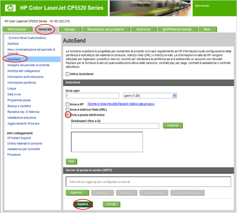 Utilizzare la seguente procedura per configurare HP AutoSend su queste due stampanti: