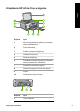 Όνοµα και περιγραφή 1 Έγχρωµη οθόνη γραφικών (αναφέρεται και ως "η οθόνη"): Προβάλετε µενού, φωτογραφίες και µηνύµατα. Μπορείτε να αλλάξετε τη θέση και τη γωνία της οθόνης για καλύτερη προβολή. 2 Χειριστήριο: Πραγµατοποιεί περιήγηση στις επιλογές µενού. 3 κουµπί Ενεργοποίηση: Ενεργοποίηση ή απενεργοποίηση της συσκευής HP All-inOne. Όταν η συσκευή HP All-in-One είναι απενεργοποιηµένη, συνεχίζει να τροφοδοτείται µε µια ελάχιστη ποσότητα ενέργειας.