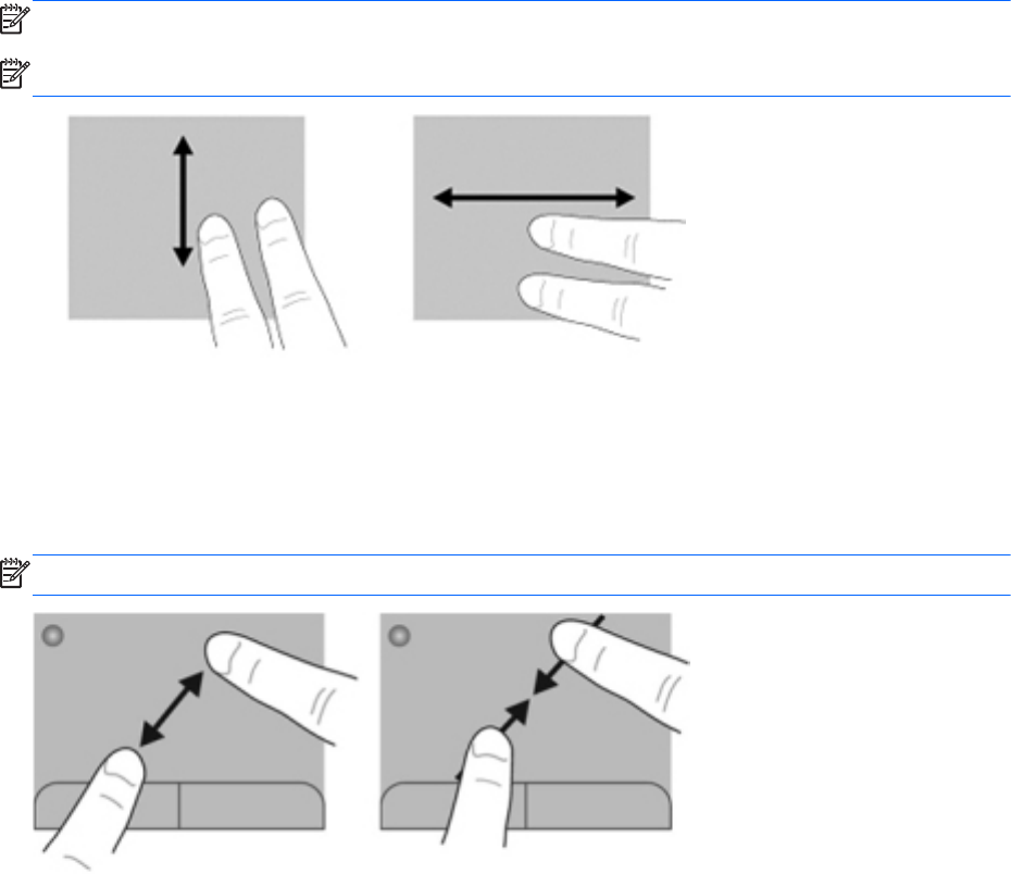 pomeranje, postavite dva malo razdvojena prsta na dodirnu tablu i vucite ih preko nje potezima
