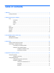 Table of contents 1 Welcome .......................................................................................................................................................... 1 Finding information ............................................................................................................................... 1 2 Getting to know your computer ..................................................................................................................... 3 Top .....................