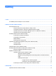 Sadržaj 1 Uvod ................................................................................................................................................................. 1 Pronalaženje više informacija o novom računalu ................................................................................. 1 2 Mrežni rad (samo odabrani modeli) .............................................................................................................. 2 Stvaranje bežične veze .............................