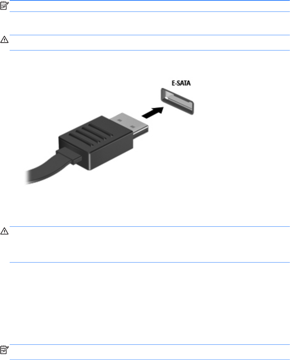 ▲ Para ligar um dispositivo eSATA ao computador, ligue o cabo eSATA do dispositivo à porta