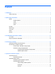 Stvarno kazalo A akumulator, odstranjevanje 22 akumulator, vstavljanje 22 Anteni WLAN, prepoznavanje 9 B Brezžična nastavitev 14 Brezžični usmerjevalnik, konfiguriranje 15 Brezžično omrežje (WLAN), potrebna oprema 14 Brezžično omrežje, povezovanje 14 D Delovno okolje 37 E enosmerni tok zunanjega vira napajanja HP, priključek za 37 F f11 31 G Gumbi napajanje 5 sledilna ploščica desno 3 sledilna ploščica levo 3 H HP Recovery Manager 31 I Ime in številka izdelka, računalnik 36 ISP, uporaba 13 K kazalne naprave