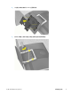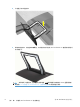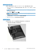 拆除电脑支架之前 为避免人身伤害和设备损坏,在拆开 HP TouchSmart PC 之前,请务必按顺序完成下列步骤: 1. 卸下 HP TouchSmart PC 上的所有介质和外接设备(例如,任何 CD、DVD、存储卡、USB 设备 或外接硬盘)。 注意: 静电会损坏 HP TouchSmart PC 或选购设备的电子组件。 确保通过快速接触金属接地设 备,释放您身体所带的静电。 2. 单击 Windows 开始按钮,然后单击关机。 警告! 为降低电击或高温表面造成人身伤害的风险,请先将电源线从墙壁插座中拔出,并等到内 部系统组件冷却之后再用手接触它们。 3. 在系统完全关机后,从 HP TouchSmart PC 背面拔下电源适配器。 4. 断开 HP TouchSmart PC 背面和侧面连接的所有其他电缆。 拆除电脑支架 完成前面的步骤后,在将 VESA 适配器面板安装到电脑背面之前,先拆除电脑支架。 1.