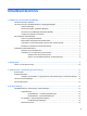 Inhaltsverzeichnis 1 Einführung in HP Client Security Manager ................................................................................................... 1 HP Client Security Funktionen ............................................................................................................. 1 HP Client Security Produktbeschreibung und gängige Beispiele ......................................................... 3 Password Manager ....................................................................
