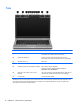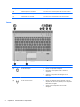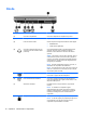 (1) Luz de conexão sem fio ● Branca: Um dispositivo sem fio integrado, como um