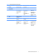 Tabell 1-2 Minnekortleserkomponenter (forts.) Nr. Spor Medier 2 MicroSD ● MicroSD (T-Flash) ● MicroSDHC 3 Aktivitetslys for minnekortleser 4 SD/MMC+/miniSD ● Secure Digital (SD) ● MiniSDHC ● ● Secure Digital High Capacity (SDHC) ● MultiMediaCard (MMC) MultiMediaCard 4.0 (MMC Plus) ● MiniSD ● Reduced Size MultiMediaCard (RS MMC) Reduced Size MultiMediaCard 4.