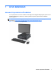 Tablo 1-2 Ortam Kartı Okuyucu Bileşenleri No. Yuva Ortam 1 xD ● xD-Picture Card (xD) 2 MicroSD ● MicroSD (T-Flash) ● MicroSDHC 3 Ortam Kartı Okuyucusu Etkinlik Işığı 4 SD/MMC+/miniSD ● Secure Digital (SD) ● MiniSDHC ● ● Secure Digital High Capacity (SDHC) ● MultiMediaCard (MMC) MultiMediaCard 4.0 (MMC Plus) ● MiniSD ● Düşürülmüş Boyutlu MultiMediaCard (RS MMC) Düşürülmüş Boyutlu MultiMediaCard 4.