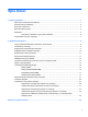 Indeks B blokady blokada kablowa 47 blokada zabezpieczająca komputera HP dla firm 48 kłódka 48 pokrywa przednia 52 C czytnik kart funkcje 2 instalowanie 36 wyjmowanie 34 D dysk twardy instalowanie 40 wyjmowanie 40 I instalowanie bateria 44 blokady zabezpieczające 47 czytnik kart 36 dysk twardy 40 kable napędu 27 karta rozszerzeń 21 napęd optyczny 31 pamięć 16 śruby mocujące 27 K Karta PCI 23 karta PCI Express 24 karta rozszerzeń instalowanie 21 wyjmowanie 21 klawiatura elementy 5 złącze 4 klawisz z logo sys