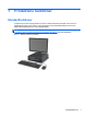 Tabell 1-2 Komponenter till mediekortläsaren (fortsättning) Nr Plats Media 2 MicroSD ● MicroSD (T-Flash) ● MicroSDHC 3 Aktivitetslampa för mediekortläsare 4 SD/MMC+/miniSD ● SD (Secure Digital) ● MiniSDHC ● ● SDHC (Secure Digital High Capacity) ● MultiMediaCard (MMC) MMC Plus (MultiMediaCard 4.0) ● MiniSD ● MultiMediaCard av reducerad storlek (RS MMC) MultiMediaCard av reducerad storlek 4.