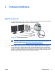 2 Instalace hardwaru Rychlé sestavení 1. Po vybalení pracovní stanici HP umístěte na vhodné pracoviště a připojte kabely myši, klávesnice a napájení. Zapojte kabel napájení od pracovní stanice do zásuvky. Obrázek 2-1 Instalace pracovní stanice Poznámka Připojte ostatní komponenty, například tiskárnu, podle pokynů dodaných se zařízeními. Další informace o pracovní stanici HP najdete na disku CD Dokumentace a diagnostika nebo na adrese http://www.hp.com/go/workstationsupport. 2.
