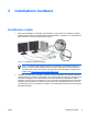 2 Installazione hardware Installazione rapida 1. Dopo aver disimballato la workstation HP, individuare un luogo idoneo per installare il sistema e collegare mouse, tastiera e cavi d'alimentazione alla workstation. Collegare il cavo d'alimentazione della workstation ad una presa dell'impianto elettrico. Figura 2-1 Installazione della workstation Nota Per collegare altri eventuali componenti, ad esempio una stampante, seguire le istruzioni fornite a corredo della periferica.