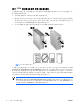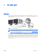2 하드웨어 설치 빠른 설치 1. HP 워크스테이션 포장을 풀고 적절한 작업 공간을 찾아 워크스테이션을 설치한 후, 마우스와 키 보드 및 전원 케이블을 워크스테이션에 연결하십시오. 워크스테이션의 전원 케이블을 전기 콘센 트에 꽂으십시오. 그림 2-1 워크스테이션 설치 주 장치와 함께 들어있는 지침에 따라 프린터 등의 구성 요소를 연결하십시오. HP 워크 스테이션에 대한 자세한 내용을 보려면 문서 및 진단 CD 를 참조하거나 http://www.hp.com/ go/workstationsupport 를 방문하십시오. 2. KOWW 위 그림과 같이, 모니터 케이블에 동글을 연결하고 동글을 그래픽 카드에 연결합니다. (모니터를 한 대만 사용하거나 그래픽 카드의 출력이 2 개인 경우에는 동글이 필요하지 않습니다.) 모니터의 전원 케이블을 전원 콘센트에 꽂으십시오. 위 그림과 같이 케이블 커넥터에 모니터 케이블을 연 결하고 케이블 커넥터를 그래픽 카드에 연결합니다.
