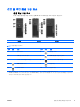 전면 및 후면 패널 구성 요소 전면 패널 구성 요소 아래 그림은 참고를 위한 것으로, 실제 HP 워크스테이션은 이와 다를 수 있습니다. xw4000 시리즈 표 2-1 전면 패널 구성 요소 항목 * ** 기호 xw6000 시리즈 xw8000/xw9000 시리즈 * 설명 항목 기호 설명 1 광 드라이브 6 헤드폰 커넥터 2 5.25 인치 드라이브 베이 7 USB 2.0(범용 직렬 버스) 포트 3 디스켓 드라이브(선택 사양) 8 하드 드라이브 사용 표시등 4 IEEE-1394a 커넥터** 9 전원 버튼 5 마이크 커넥터 10 전원 표시등 특정 전면 패널 구성 요소에 대한 정보는 워크스테이션의 서비스 및 기술 참조 안내서를 참조하십시오. xw4000 및 xw6000 시리즈 워크스테이션의 경우 IEEE-1394a 는 선택 사양으로 제공됩니다. 이 선택 사양과 함께 제품을 구입하지 않 았다면 이 커넥터에 덮개가 씌여 있을 것입니다.