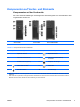 Komponenten auf Vorder- und Rückseite Komponenten auf der Vorderseite Die unten stehenden Abbildungen sind lediglich eine Orientierungshilfe. Ihre HP Workstation sieht möglicherweise anders aus. Serie xw4000 Serie xw6000 Serie xw8000/xw9000 Tabelle 2-1 Komponenten auf der Vorderseite * Nr. * ** Symbol Beschreibung Nr. Symbol Beschreibung 1 Optisches Laufwerk 6 Kopfhöreranschluss 2 5,25-Zoll-Laufwerksschacht 7 USB 2.