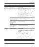 Setup-programmet Setup-programmet (Fortsättning) Rubrik Alternativ Security [Säkerhet] (fortsättning) OS Security [OS-säkerhet] (vissa modeller) Beskrivning • Data Execution Prevention [Förhindra exekvering av data] (vissa modeller) (aktivera/avaktivera) Hjälper till att förhindra obehörig åtkomst till operativsystemet. ✎ Det här alternativet fungerar endast om processorn och operativsystemet som används kan användas tillsammans med den här funktionen.