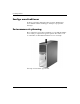 Produktegenskaber 12. Placer underpanelet (drej det 90°) med logoet nederst, og lås det derefter fast i panelet. Ændring fra en minitower- til en desktopkonfiguration 13. Monter computerens frontplade og adgangspanel igen. 14. Tilslut eksternt udstyr. 15. Hvis du normalt låser Smart Cover-låsen, skal du aktivere den igen i computerens opsætningsprogram og aktivere Smart Cover-sensoren. Hardwarevejledning www.hp.