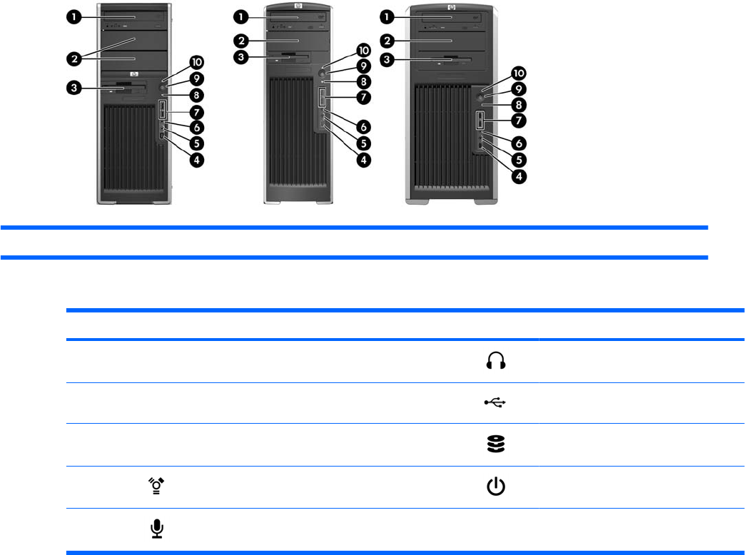Weitere Informationen zu den Komponenten auf der Vorderseite Ihrer Workstation finden Sie im Service and Technical