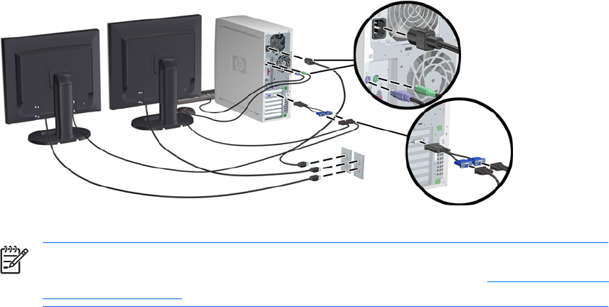 결하고 케이블 커넥터를 그래픽 카드에 연결합니다. (모니터를 한 대만 사용하거나 그래픽 카드