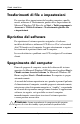 Guida introduttiva Per spegnere manualmente il computer, premere e tenere premuto il pulsante di accensione per quattro secondi. Per riconfigurare il pulsante di accensione in modo che funzioni in modalità On/Off eseguire Computer Setup. Per ulteriori informazioni sull’utility Computer Setup consultare la Guida dell’utility Computer Setup (F10) sul CD Documentazione e diagnostica.