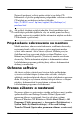 Začíname Riešenie všeobecných problémov (pokračovanie) Problém Príčina Počítač zobrazuje nesprávny dátum a čas. Pravdepodobne je potrebné vymeni5 batériu hodín RTC (Real-Time Clock). ✎ Riešenie Najprv skúste zmeni5 dátum a čas v okne Control Panel (Ovládací panel) (na aktualizáciu dátumu a času hodín RTC je možné použi5 aj program Computer Setup). Pripojenie Ak problém pretrváva, vymeQte batériu počítača do hodín RTC.