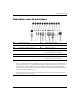 Productvoorzieningen Onderdelen aan de achterkant 1 Netsnoerconnector 7 n RJ-45-netwerkconnector 2 Spanningsschakelaar 8 l Parallelle poort PS/2-muisconnector (groen) 9 c Monitorconnector 3 b 4 a PS/2-toetsenbordconnector (paars) - J Audio-uitgang (groen) (voor apparaten met voeding) 5 o USB-poorten q j Audio-ingang (blauw) 6 m Seriële poort w c Digital Video Interface (DVI–D) monitorconnector (optioneel) ✎ Aantal en indeling van de connectoren kunnen per model verschillen.