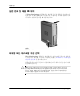 2 하드웨어 업그레이드 액세스 패널 분리 및 교체 Å 경고: 감전이나 뜨거운 표면으로 인한 부상의 위험이 있으므로 반드시 벽면 콘 센트에서 전원 코드를 뽑고 내부 시스템 부품의 열이 식은 다음에 만지십시오. Å 경고: 감전, 화재 또는 장비 손상의 위험을 줄이려면 원격 통신 또는 전화 연결 단자를 네트워크 인터페이스 컨트롤러(NIC) 소켓에 꽂지 마십시오. Ä 주의: 정전기는 컴퓨터나 옵션 장비의 전자 부품을 손상시킬 수 있습니다. 아래 절차를 시작하기 전에 접지된 금속 물체를 손으로 잠깐 만져서 정전기를 미리 방전하십시오. 자세한 내용은 부록 D, "정전기 방전"을 참조하십시오. Ä 주의: 컴퓨터가 AC 전원에 연결되어 있는 경우 시스템 보드에 항상 전압이 흐 르고 있습니다. 컴퓨터를 열기 전에 항상 전원에서 전원 코드를 뽑아 시스템 보 드가 손상되지 않도록 하십시오. 시스템 메모리, 확장 슬롯 어셈블리 및 전지에 액세스하려면 다음 방법 으로 액세스 패널을 분리해야 합니다. 1.