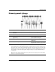 Elementy produktu Elementy panelu tylnego 1 Gniazdo kabla zasilaj cego 7 n Zł cze sieciowe RJ-45 2 Przeł cznik wyboru napi cia zasilania 8 l Zł cze równoległe 3 b Zł cze myszy PS/2 (zielone) 9 c Zł cze monitorowe - Y q j Zł cze wej cia liniowego audio (niebieskie) w c Zł cze monitorowe DVI-D (Digital Video Interface) (opcjonalne) 4 a Zł cze klawiatury PS/2 (purpurowe) 5 o Port USB (Uniwersal Serial Bus) 6 m Zł cze szeregowe Zł cze wyj cia liniowego (zielone) (dla urz dze zasilany