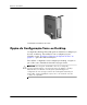 Atualizações de Hardware Remoção do Painel de Acesso Para reinstalar o painel de acesso: 1. Verifique se o painel está adequadamente alinhado, deslize-o na direção frontal do computador e aperte o parafuso para prendê-lo. 2. Instale o bloqueio do cabo opcional, se desejar. 3. Reinstale o suporte, se desejar. 4. Reconecte todos os dispositivos externos, ligue o cabo de alimentação na tomada e ligue o computador. 5. Utilize o Utilitário Computer Setup para ativar o Sensor Inteligente de Tampa, se desejar.
