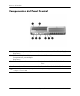 Recursos del Producto Componentes del Panel Frontal 1 Compartimiento para Múltiples Dispositivos 5 Conector Universal Serial Bus (USB) (2) 2 Palanca de Expulsión del Compartimiento para Múltiples Dispositivos 6 Luz de Encendido 3 Conector del Micrófono 7 Luz de Actividad de la Unidad de Disco Duro 4 Conector de Audífonos 8 Botón de Encendido de Dos Estados ✎ Todos los dispositivos USB (incluyendo el teclado y el mouse) pueden ser conectados a cualquier conector USB. 1–2 www.hp.