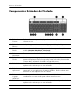 Recursos del Producto Componentes Estándar del Teclado 1 Teclas de Función Realizan funciones especiales, dependiendo de la aplicación de software en uso. 2 Teclas de Edición Incluye lo siguiente: Insert, Inicio, Av Pág, Suprimir, Fin, y Re Pág. 3 Luces de Estado Indican el estado de las configuraciones de la computadora y del teclado (Bloq Num, Bloq Mayús y Bloq Despl). 4 Teclas Numéricas Funcionan como el teclado de una calculadora.