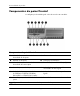 Funcionalidades do produto Teclado Componentes do teclado 1 Teclas de função Executam funções especiais, de acordo com a aplicação de software utilizada. 2 Teclas de edição Incluem as seguintes teclas: Insert, Home, Page Up, Delete, End e Page Down. 3 Indicadores luminosos de estado Indicam o estado do computador e das definições do teclado (Num Lock, Caps Lock e Scroll Lock). 4 Teclado numérico Funcionam como as teclas de uma calculadora.