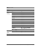 電腦設定 (F10) 公用程式 電腦設定 (續) 標題 選項 說明 標準 CMOS 功能 (Standard CMOS Features) PATA 控制器 停用 / 啟用 PATA 控制器 PATA 頻道 0 主要 PATA 頻道 0 次要 如果使用 PATA HDD,每一項都可以讓您: • 執行特定頻道的 HDD 自動測試: • SMART 狀態檢查 (續) – 目標磁碟 – SMART – SMART 狀態檢查 • HDD 簡短自動測試 – 目標磁碟 – 預估測試時間 – 開始測試 • HDD 擴充自動測試 – 目標磁碟 – 預估測試時間 – 開始測試 • 將特定頻道的裝置詳細說明設定為: •無 • 自動 • 手動 • 將特定頻道的存取模式設定為: • CHS (磁柱 ─ 磁頭 ─ 磁區, Cylinder-Head-Sector) • LBA (邏輯區塊地址設定,Logical Block Addressing) •大 • 自動 ✎ 對特定電腦設定選項的支援,視硬體組態而有所不同。 電腦設定 (F10) 公用程式指南 www.hp.