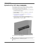 Hardwareopgraderinger du installerer et drev i den nederste 5,25"-drevbås, skal ✎ Hvis metalskærmen, der dækker båsen, tages af ved at trykke sølvtappen i venstre side indad på kabinettet og derefter trække skærmen ud fra kabinettets forside. er i alt placeret otte ekstra styreskruer/fastgørelsesskruer bag ✎ Der pladen på kabinettets forside. Fire skruer har 6-32 standardgevind, og fire skruer har M3 metrisk gevind. Standardskruerne bruges til harddiske og er sølvfarvede.