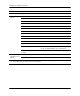 Utilidad de configuración (F10) Utilidad de configuración (Continuación) Título Periféricos integrados (continuación) Configuración de administración de energía ✎ 10 Opción Descripción Red Local (LAN) Integrada Activa/desactiva el controlador de red local (LAN) integrada. Memoria ROM de inicialización de la red local (LAN) integrada Activa/desactiva la memoria ROM de inicio del chip de la red local (LAN) integrada.