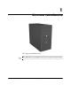 Riistvara täiendamine 5,25-tollise draivi ehisplaadi eemaldamine Kui arvuti tarnimisel ei olnud 5,25-tollises valikulises lahtris draivi, siis on lahter kaetud ehisplaadiga. Kui lisate valikulisse lahtrisse draivi, peate esmalt eemaldama ehisplaadi. 1. Lülitage arvuti (nõuetekohaselt, operatsioonisüsteemi kaudu) ja kõik välisseadmed välja. 2. Lahutage toitejuhe võrgust ja arvutist, seejärel eemaldage välisseadmete ühendusjuhtmed. 3. Eemaldage külgpaneel ja esipaneel.