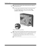 Rozbudowa sprz tu 5. Otwórz oba zatrzaski gniazda 1, a następnie włóż moduł do gniazda 2. Instalowanie modułu DIMM pamięci są skonstruowane w taki sposób, że możliwe jest ich ✎ Moduły zainstalowanie tylko w jednej pozycji. Należy dopasować wycięcie w module do wypustki w gnieździe pamięci. 6. Wciśnij moduł do gniazda, aż zostanie całkowicie i prawidłowo osadzony. Sprawdź, czy zatrzaski są zamknięte 3. 7. Załóż panel dostępu komputera i podłącz kabel zasilający.