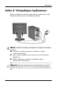 Pika-asennus Vaihe 5: Virtajohtojen kytkeminen Kytke virtajohdot ja monitori oheisen kuvan mukaisella tavalla Käynnistä ensin näyttö ja sen jälkeen tietokone. Å Ä VAARA: Sähköiskun tai laitteen vahingoittumisen vaaraa voit vähentää seuraavasti: ■ Älä poista virtajohdon maadoitusta. Maadoitus on tärkeä turvallisuuden kannalta. ■ Kytke virtajohto maadoitettuun pistorasiaan, joka on aina helposti käytettävissä.