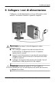 Guida introduttiva ■ Ä Se il sistema dispone di più sorgenti video (integrata, schede PCI o PCI-Express) installate (PCI-Express solo su determinati modelli) e di un unico monitor, il monitor deve essere collegato al connettore corrispondente sulla sorgente selezionata come scheda VGA principale. Durante l’avvio, gli altri connettori del monitor sono disabilitati; se il monitor è collegato ad una di queste porte, non funziona. È possibile selezionare la sorgente VGA predefinita in Computer Setup.