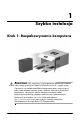 1 Szybka instalacja Krok 1: Rozpakowywanie komputera Å OSTRZE ENIE: Aby zmniejszyć ryzyko doznania powa*nych obra*eciała, nale*y przeczytać Podr cznik bezpiecze stwa i wygody pracy. Opisana w nim została prawidłowa organizacja pracy, pozycja przy pracy oraz zalecane sposoby pracy i ochrony zdrowia u*ytkowników komputerów, jak równie* wa*ne informacje na temat zasad bezpiecze-stwa obsługi urz&dze- elektrycznych i mechanicznych. Podr1cznik ten znajduje si1 w sieci Web pod adresem http://www.hp.