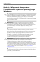 Szybka instalacja Krok 6: Wł/czanie komputera i instalowanie systemu operacyjnego Windows komputer nie został dostarczony z systemem operacyjnym ✎ Jeżeli Microsoft Windows XP Professional/Home, niektóre fragmenty niniejszej dokumentacji mogą go nie dotyczyć. Instrukcje operacyjne można znaleźć w dokumentacji systemu operacyjnego oraz w pomocy online.
