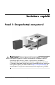 1 Instalare rapid Pasul 1: Despacheta i computerul Å AVERTISMENT: Pentru a reduce riscul de r#nire grav#, citi i manualul Ghid pentru siguran şi confort. Acesta descrie instalarea şi pozi ia corecte ale sta iei de lucru, precum şi m#suri pentru s#n#tatea şi deprinderile de lucru corecte pentru utilizatorii computerului, furnizând şi informa ii importante despre m#surile de siguran # electric# şi mecanic#. Acest ghid se g#seşte pe Web la adresa http://www.hp.