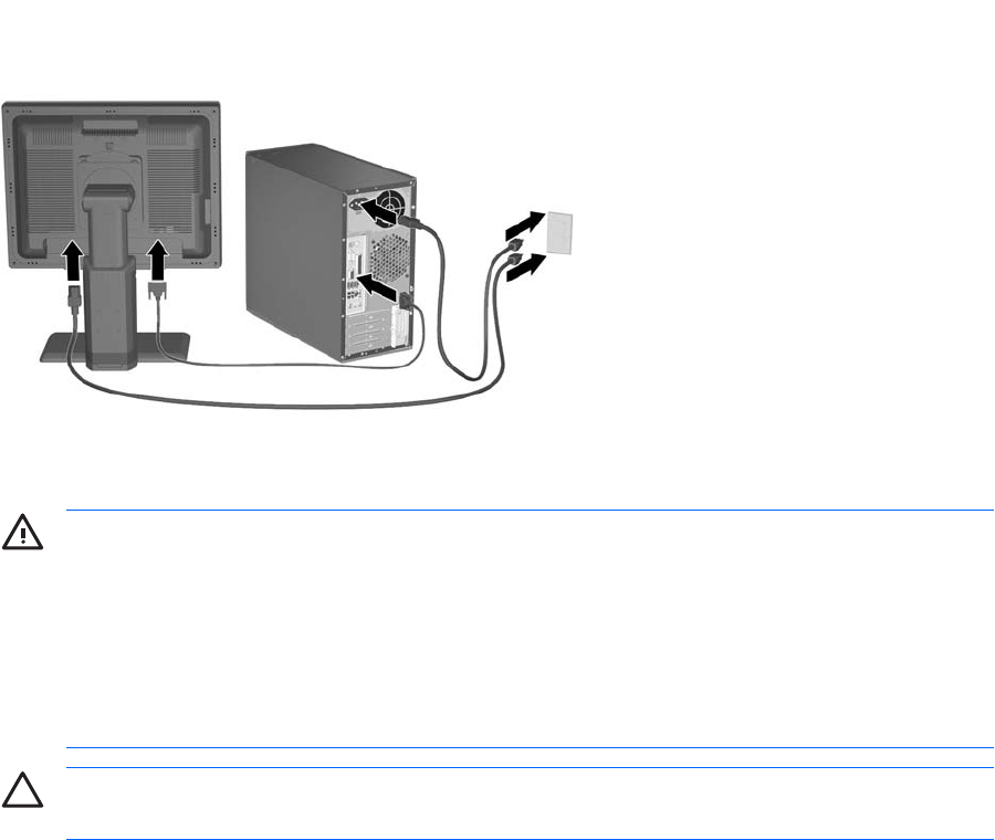 Spojite kabele za napajanje i kabel monitora kako je prikazano. Uključite monitor, zatim uključite